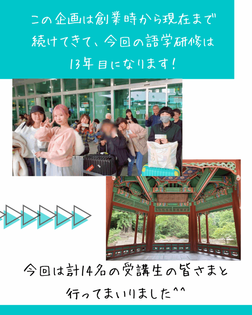 KJK韓国語学院では、創業時より毎年開催している韓国での語学研修が、今年も無事に終了いたしました🇰🇷✈️